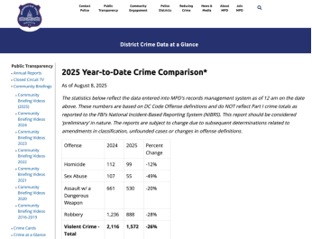 参预2024年后,次第数据出现回落——凶杀案降至187起,同比减少约32%,举座案件总额下落约15%,其中暴力坐法和财产坐法均有所减少。截止当今,2025年的有关数据也齐有所裁减。联系词,即便如斯,华盛顿特区的坐法水平依然显赫高于大多数州和主要城市。